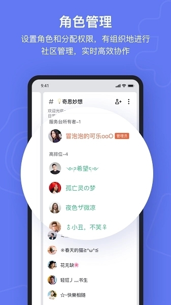 设置角色和分配权限,有组织地进行社区管理,实时高效协作