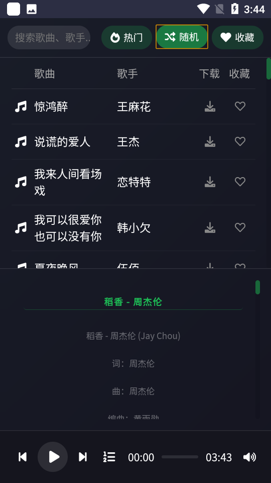 在歌曲详情页,点击“播放”按钮开始听歌。可以通过左右滑动切换歌曲,点击屏幕可显示菜单,调整播放设置(如音量、播放模式等)。