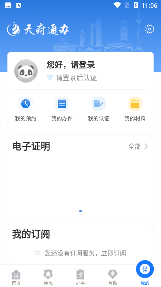 打开天府通办应用,点击右下角的“我的”或“个人中心”,进入设置页面。