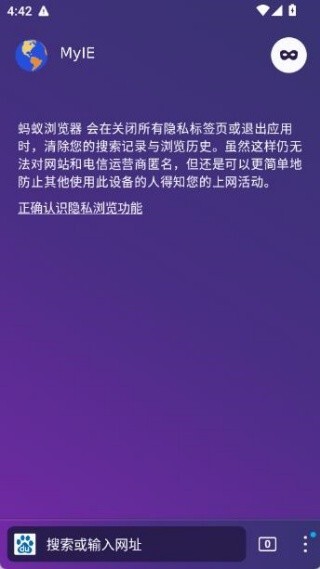 1、在搜索框输入网址或关键词,即可快速访问网站,系统会自动屏蔽广告与追踪脚本。