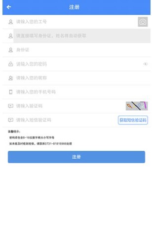 2、依据页面提示填写注册所需信息,例如厂牌上的工号、密码、手机号码等内容,完成后点击“注册”按钮;