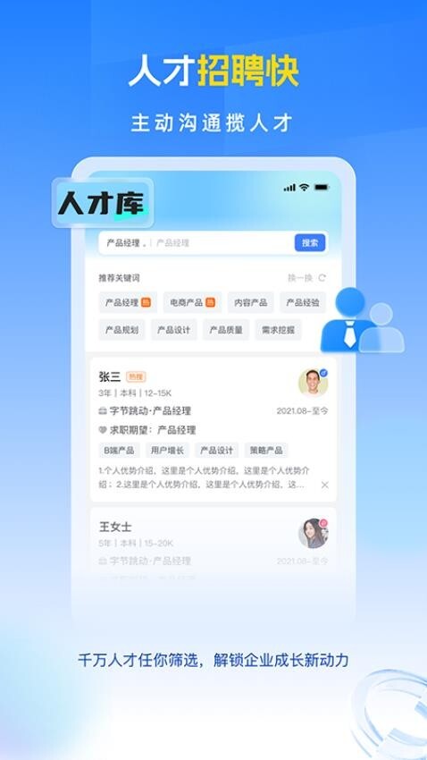 2,提升招聘效率:招聘流程在职位发布、简历筛选、面试安排等环节将更高效。平台会借助人工智能、大数据等技术手段,提高招聘效率,缩短招聘周期。