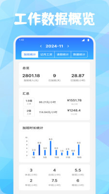 数据分析:提供日历视图、统计图表,展示工作强度与收入趋势,辅助决策。