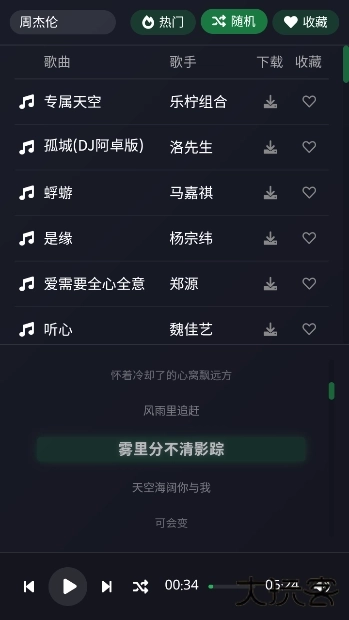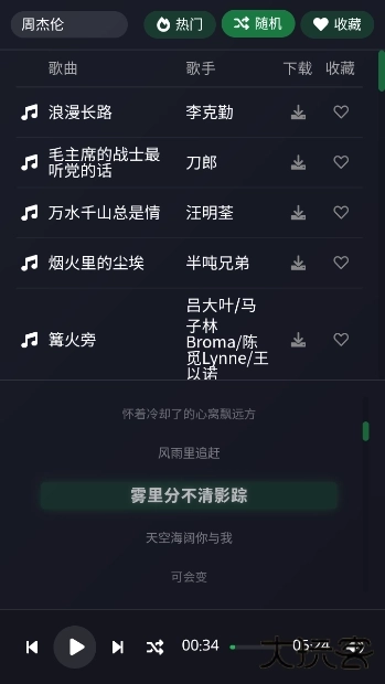 离线下载:对于喜欢的歌曲,可以点击“下载”按钮,将歌曲下载到本地,离线时也能播放。