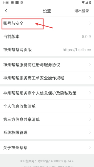 3、在设置界面,点击账号与安全选项,进入账号与安全管理页面。