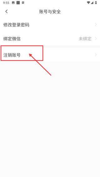 4、在账号与安全管理页面,点击注销账号选项,完成账号注销操作。