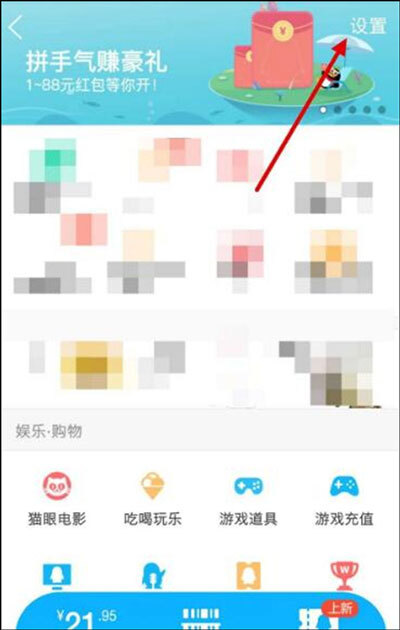 3、进入到QQ红包的操作界面后,找到“设置”选项,点击打开。