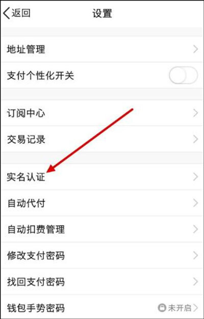 4、进入到设置的操作界面后,找到“实名认证”选项,点击打开。