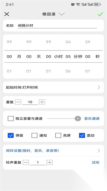 闹钟支持自定义重响的次数与间隔时长,为用户提供更贴心的提醒服务。