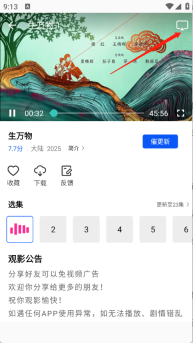 1、打开你想观看的影视资源并进入播放页面,接着点击页面右上角的投屏按钮。