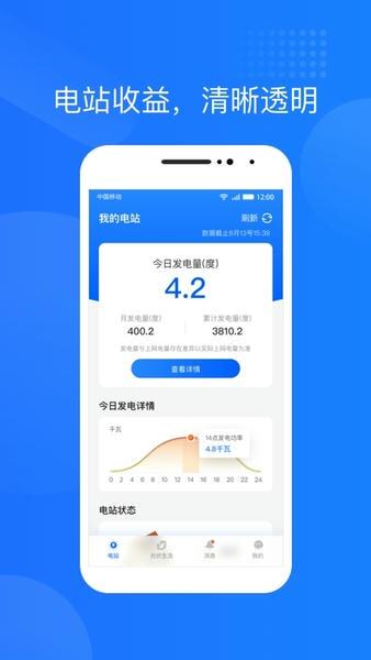 3.能够直观呈现发电数据与发电收入,用户每天都可以查看当日及过往的发电情况。