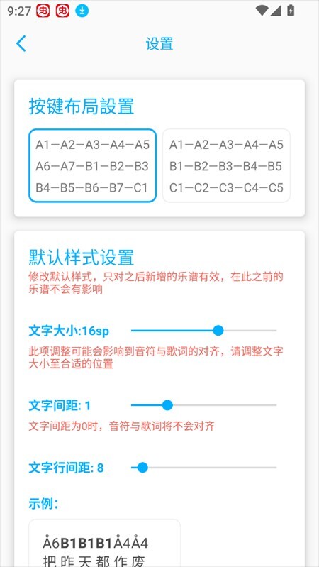 用户可以自由设置乐谱的文字大小,文字间距,文字行间距等参数,轻松制作游戏乐谱