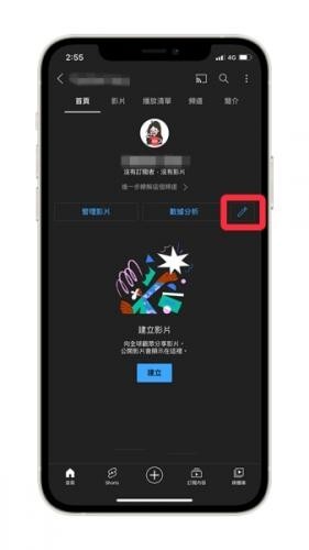 3、点击首页的「铅笔编辑」图标。YouTube修改频道名称(适用于YouTube手机版):点击「编辑」按钮。
