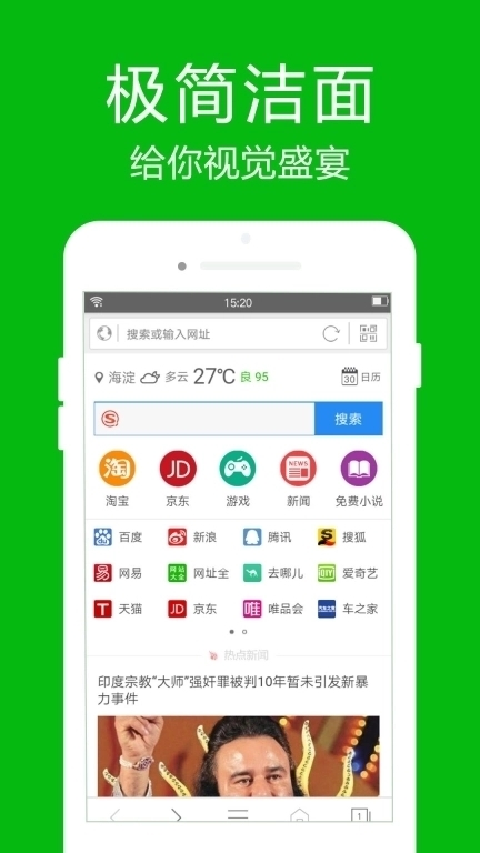 1、极速浏览器简约的用户界面设计清爽使用体验。