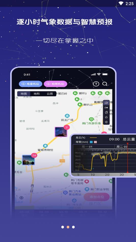 2、电子气象地图,打开地图的话则可以在地图上观察最佳的观星机位以及拍照机位