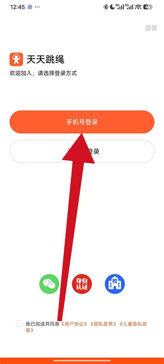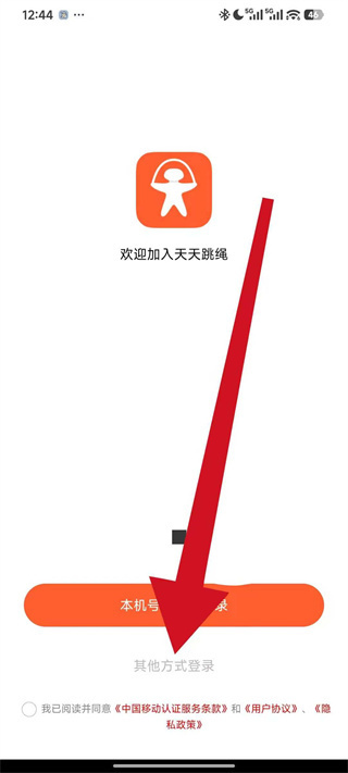 1、打开天天跳绳,先勾选相关协议,点击其他方式登录。