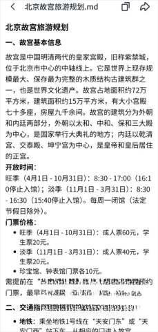 举个例子,我在对话框里输入“帮我制定一份北京故宫的旅游规划”,选择探索模式,并且添加高德地图MCP,把任务完全交给扣子来处理。短短几分钟后,扣子就生成了一份详尽的旅游攻略,实在是太便捷了!