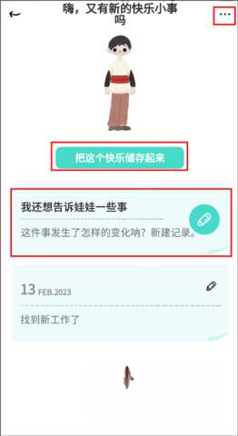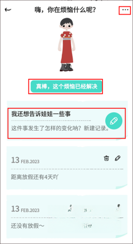 5、要是选择了第一项,就能再次倾诉,娃娃会记录你对烦恼的反馈与更新,记下你内心深处的每一次起伏。