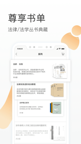 「有章」阅读平台精心打造了百余种系列书单,内容聚焦法律学术研究、实务操作、教育教学及人文社科经典领域,不仅呈现了不同学科、院校与专业机构的知识沉淀,更强化了专业阅读与实际应用场景的结合,助力用户构建系统化的法律知识体系并提升应用能力。此外,平台还汇聚了海量司法案例资源,覆盖最高人民法院、各级地方法院发布的指导案例、公报案例、典型案例、参阅案例及裁判文书等多种类型,为法律知识的理解与运用提供直观参考,有效指导法律实践工作。