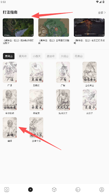 4、图鉴板块,集中呈现黑神话悟空系列的全部角色资料,涵盖各角色的灵感溯源等内容,点击对应图片即可浏览详尽的文字说明。