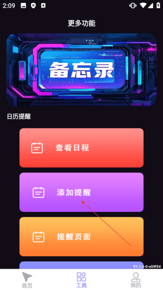 2、在更多功能界面,点击【添加提醒】,进入添加提醒界面。