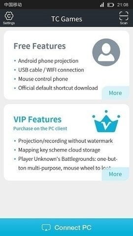 2、与模拟器的运作方式不同,溜溜TCGames采用的是手机投屏模式,它能把手机的整个画面通过映射的方式投射到电脑上,因此电脑和手机必须进行连接才行。