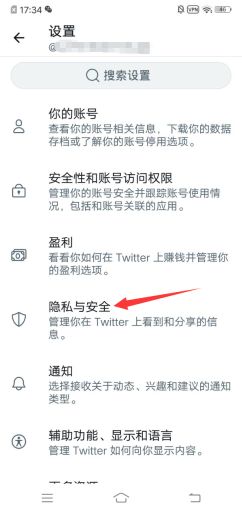 3、进入后选择"隐私与安全"。