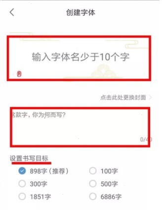 2、进入创建页面后,先设置专属的字体名称与简介,接着选择书写方式——共有屏幕手写和纸写扫描这两种。