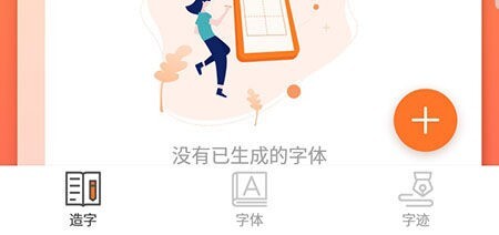 1、第一步是打开手机上的造字软件,进入应用后,借助底部菜单栏里的“造字”选项进入对应的功能板块,接着点击界面右下角的加号按钮,即可启动字体创建流程。