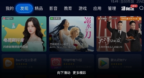 在当贝市场主界面,使用遥控器进入 “影音” 或 “搜索” 分类。