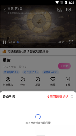 4. 接着下方会显示出设备列表,挑选你要用来投屏的设备就行(第一次搜索或许会稍慢一些,需要耐心等待片刻)。