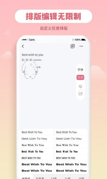 您可以在应用里挑选任意字体用于社交平台,那些超酷、超可爱、超有个性的字体、颜文字和特殊符号,在任何场景下都能使用!