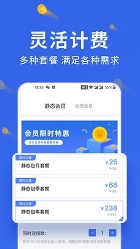 免费版每日限定时长或流量,超额需等待次日或付费升级。付费版按流量、时长、IP数多种计费,套餐灵活。流量永不过期,充值后长期有效。使用日志透明可查,杜绝偷跑流量。