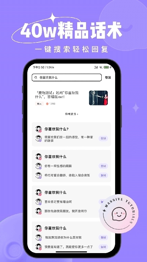 内容丰富:40万+话术覆盖90%以上日常聊天场景,减少用户创作压力。