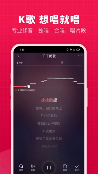 拥有庞大的曲库,提供高品质音质设计,让用户有出色的K歌体验。