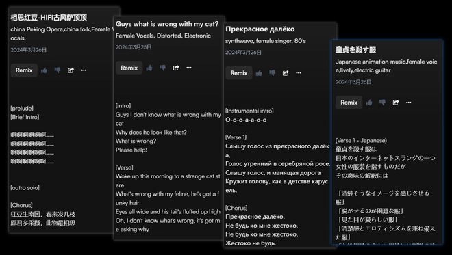 目前Suno支持多种语言的歌词理解,包括中文、英文、日文以及俄文等。