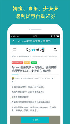 【淘饭饭,轻松购物享返】:在淘宝、拼多多、天猫、京东等电商平台购物时,可自动领取优惠券并获得返!2、【微信防撤回功能】:WeXposed(即微X模块、WX模块)整合了fkzhang此前开发的微信转发模块、微信防撤回模块、微信通讯录管理模块这3个模块,同时还具备微信抢红包的功能。