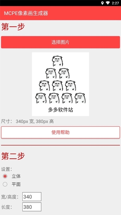 MCPE像素画生成器是一款专为《我的世界》玩家设计的辅助工具,可将手机中的任意图像转换为像素艺术并一键导入游戏世界。支持自定义方块材质、尺寸、方向及立体厚度,最大生成尺寸达512×512像素,兼容平面与立体创作。软件界面全中文,操作简单,无需MOD或插件即可实现复杂图像的像素化还原,是像素画爱好者与MC创造者的必备工具。