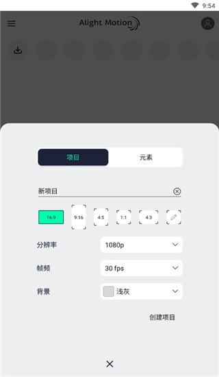 3、支持设置项目名称、宽高比例、分辨率、帧速率及背景颜色;