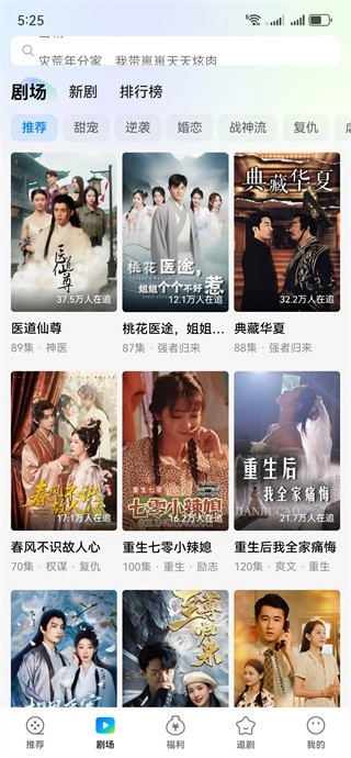 2、剧场里面包含了超多类别,可以找到喜欢的短剧,还能查看排行榜;