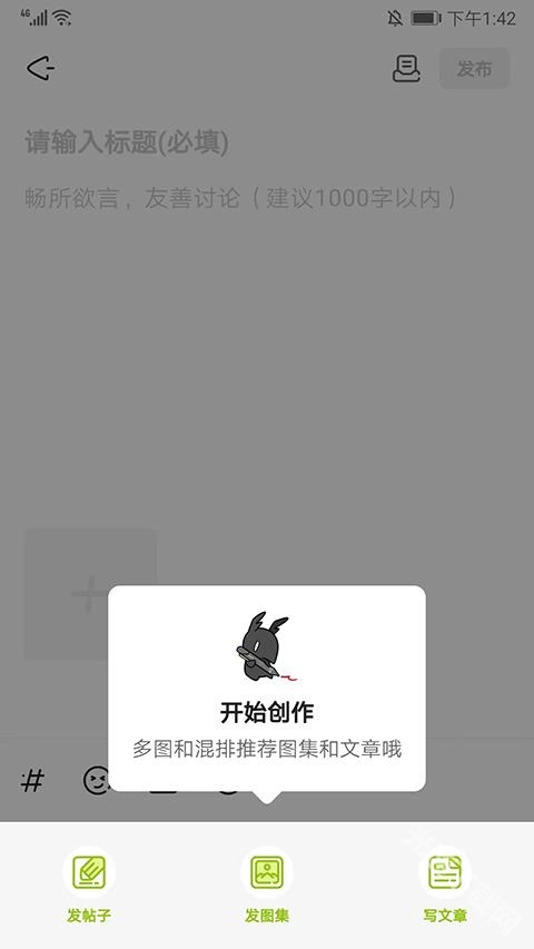 4、在游戏社区,我们还可以进行发帖子、发图集和写文章,