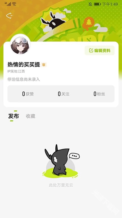 5、进入个人中心,能够查看详细的获赞数量、发布作品数量、关注人数、粉丝人数以及收藏内容数量等信息,也可以对用户资料进行编辑。