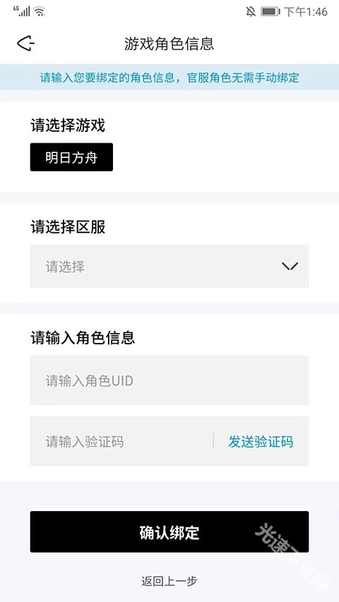 8、先挑选对应的游戏和区服,接着填写角色信息并输入验证码,之后点击【确认绑定】按钮,就能在森空岛完成游戏角色信息的绑定操作了。