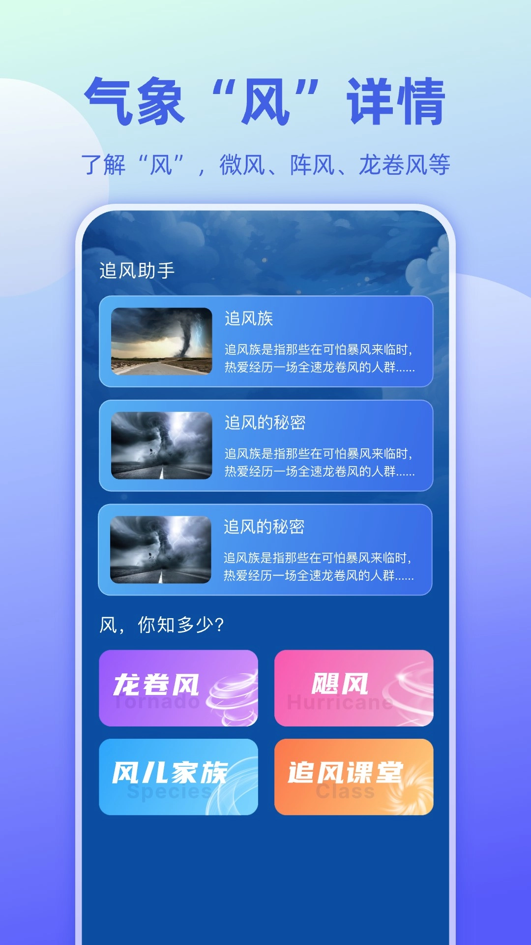 天气预报24小时实时查询软件简介:【天气预报24小时实时查询软件】专门用于提供即时天气信息,可以帮助用户了解当前位置以及全球其他地区的天气情况。这些天气都有不同的功能,用户可以根据个人偏好选择不同的应用来满足自己对于天气信息的需求。快来选择下载吧!