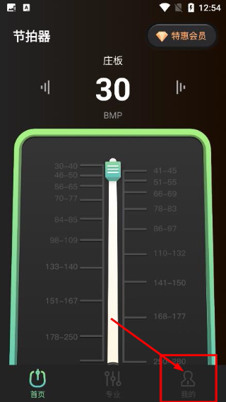 2、进入节拍器功能主界面后,找到底部功能栏里的【我的】选项并点击,就能进入对应的个人相关页面,为后续操作做准备。