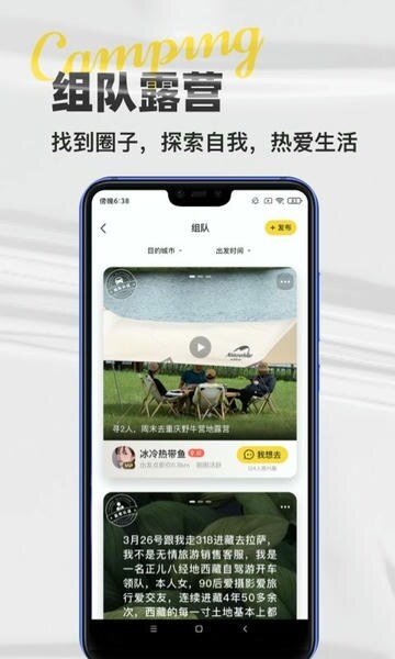 一键组队社交:通过兴趣标签匹配用户,发起露营组队邀请,解决“想玩没伙伴”的痛点,促进社群互动。