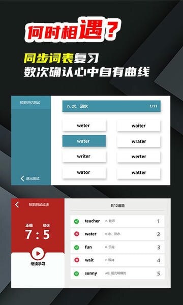 教材同步学习:根据各版本教材(如人教版、外研社版)划分单词库,方便学生按年级学习。