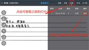 8、如果教师需要查看之前所批阅试题,点击界面顶部菜单栏 “记录”即可查看,点击“修改”可进行重新批阅