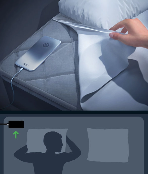 加速度计用于分析您睡觉时的运动。请务必正确放置手机,这一点很重要: