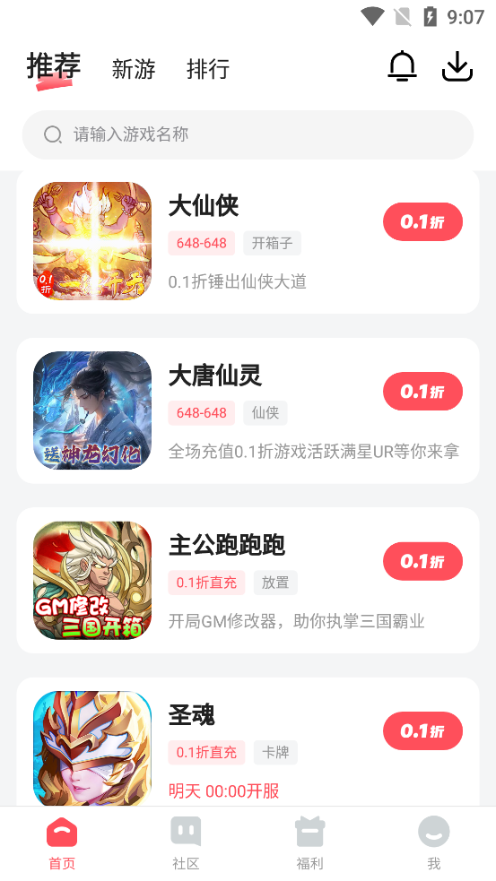 3387游戏盒子0.1折是一款专为手游玩家打造的极致省钱福利平台,提供海量热门手游的0.1折超低折扣充值、独家礼包、BT服、公益服等特色资源。软件通过深度整合游戏厂商直充渠道和独家合作资源,让玩家能以低至官方价格1%的成本获取游戏内道具和货币,享受“一分钱十分货”的超值游戏体验,是精打细算型玩家的必备神器。